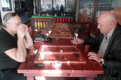 В первую очередь в следующем году мы закупим новые доски, кожаные стаканы и проектор. Тестовый Чемпионат посетил Аксакал СТФН—Заур-Бек Мухтарович Сутатов, единтсвенный магистр по длинным нардам в ставропольском крае, у которого за плечами много титулованных побед. Блеснул мастерством и действующий Чемпион Моздока с 2007 года Анатолий Попов, который покозал мастер — класс в бэкгаммон. Участники турнира по достоинству оценили кухню, прекрасный сервис и гостепримство Бориса Исраеляна, директора Кафе "ВЕРАНДА". Ресторан с хорошей кухней и прекрасным видом на город.