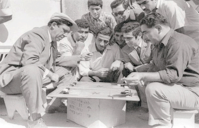 Юрий Никулин играет в нарды в перерывах между сьемками